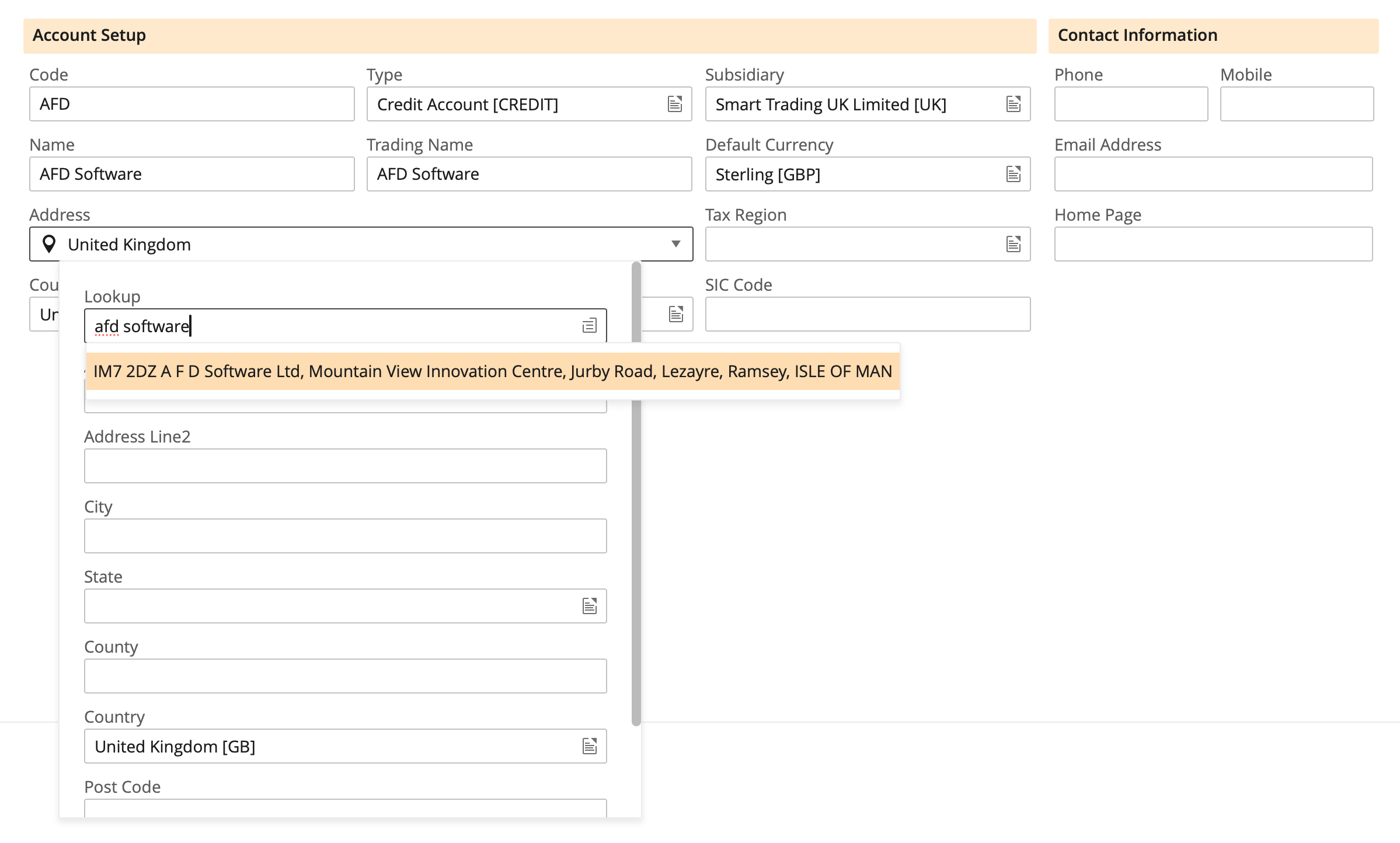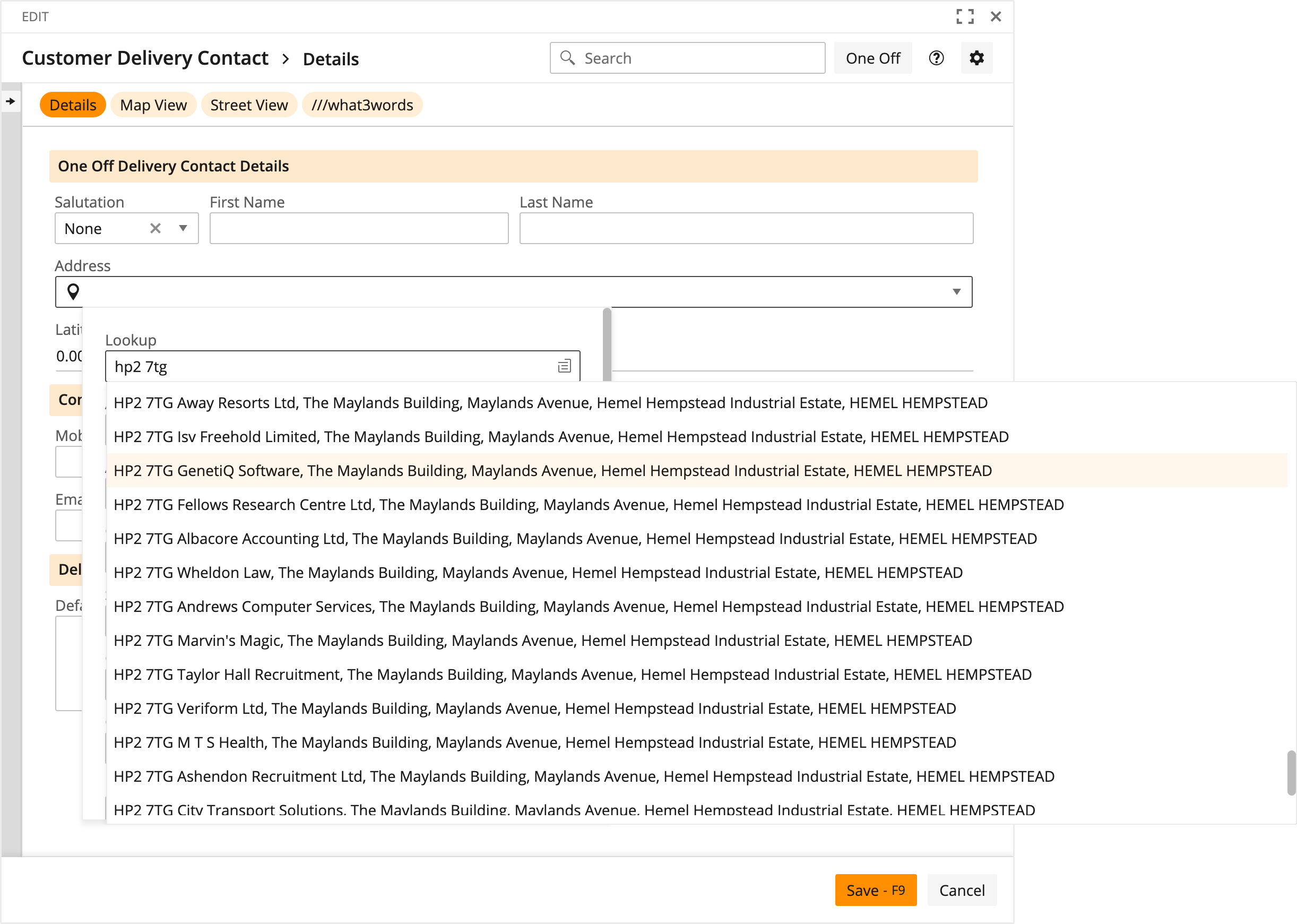 This can take a number of address fragments to help locate an address. In this example we’re searching by company name.